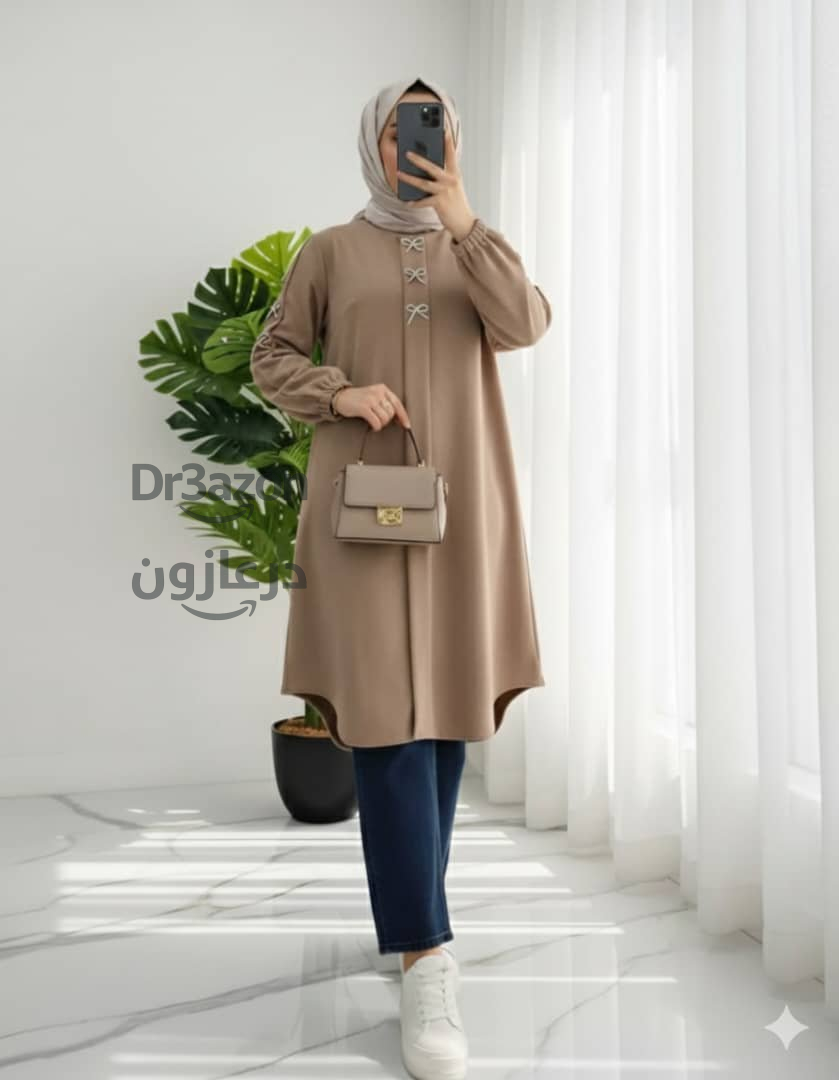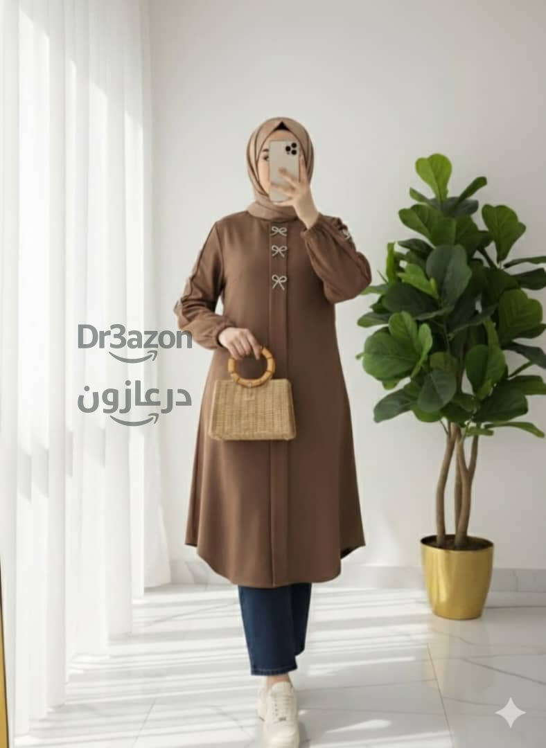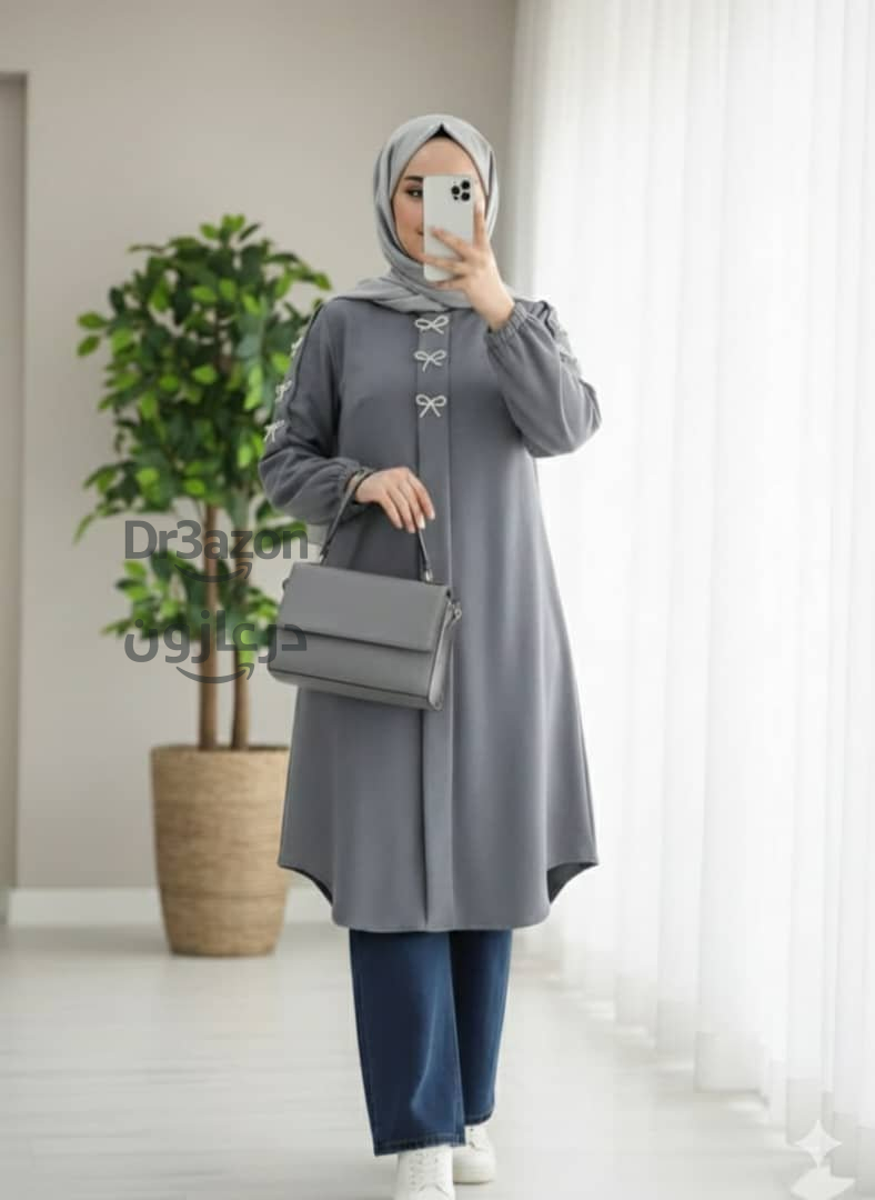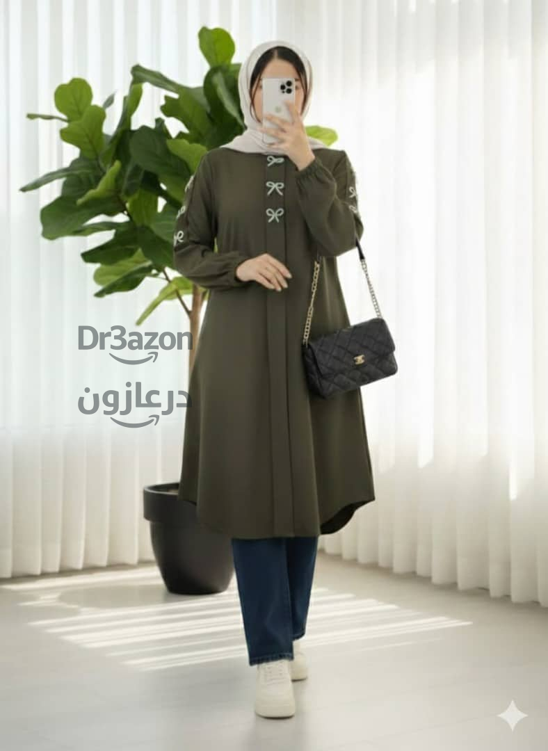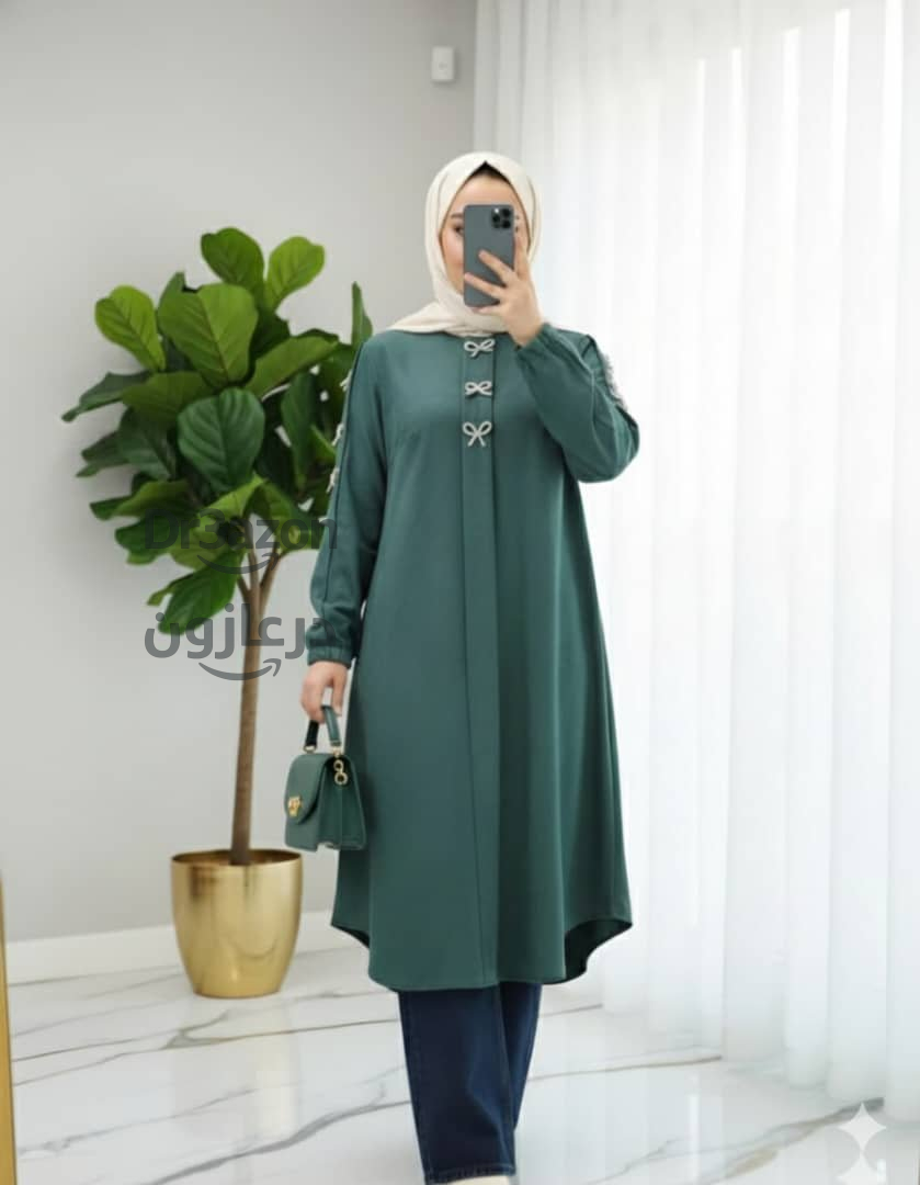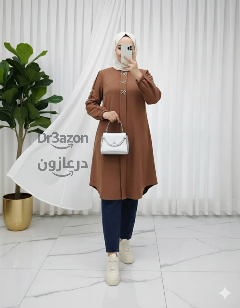 قميص نسائي طويل بألوان متعددة ، يتميز بتصميم عصري مع أزرار مزينة ناعمة لإطلالة راقية